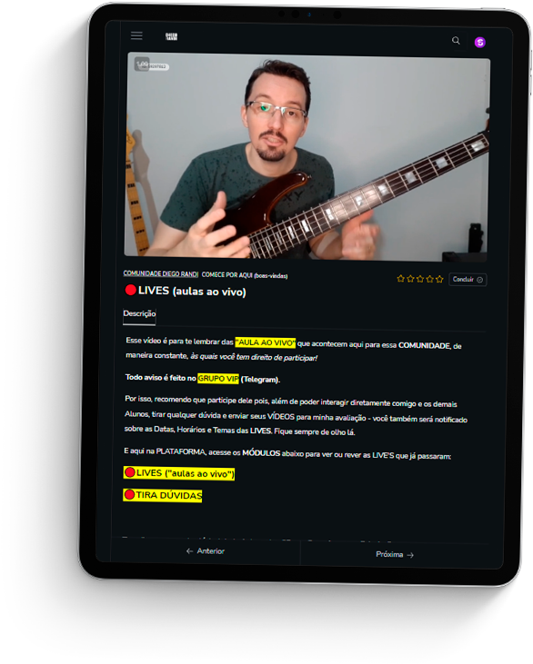 Assista ao depoimento e veja como ele superou as travas e voltou a evoluir no baixo.