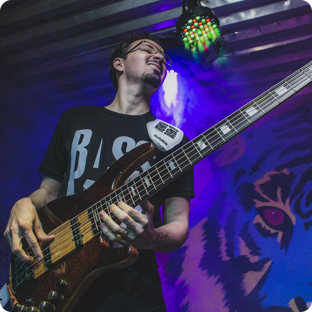 Prazer, sou o Diego, músico profissional e professor há mais de 16 anos, ensinando milhares de alunos a se destravarem e tocarem baixo de verdade ao redor de todo o mundo!